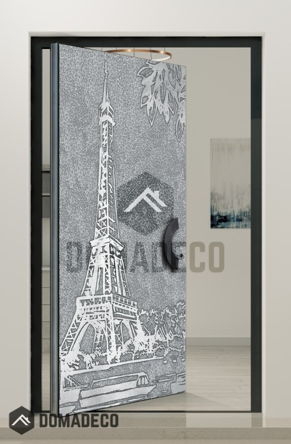 PIVOT Paris - porte pivotante avec texture Tour Eiffel en métal fraisé