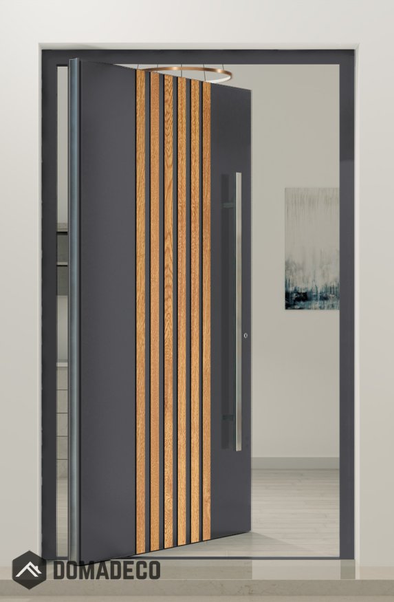 PIVOT RAIL5 - porte pivotante en aluminium avec lattes verticales en profilés d'aluminium