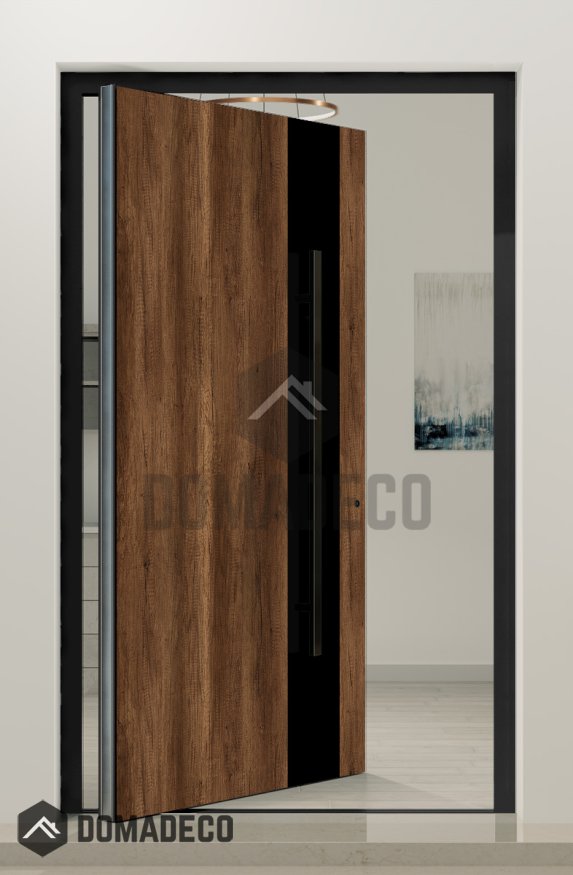 - Porte pivotante et cadre de porte en aluminium;