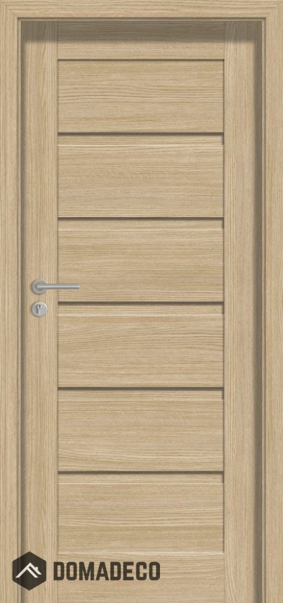 La porte est composée d’un rail et d’un montant en MDF de qualité supérieure, recouvert d’une finition de surface ECO TOP, SILKSTONE au grain de bois vertical. Les panneaux ont un grain de bois horizontal. Les motifs W03, W07, W08 ont un grain de bois horizontal et les motifs W05, W06 ont un grain de bois vertical.