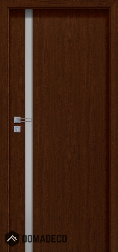 La porte est composée d'un rail et d'un montant en bois qui sont surmontés de deux panneaux HDF recouverts de placage naturel. Le matériau de remplissage standard se compose d’aggloméré plein. Les modèles A01, A02, A03 sont pourvus d’une vitre en verre trempé blanc mat, de 6 mm d’épaisseur. Le bord supérieur de la porte dispose d’une feuillure incluse dans un système à feuillure.