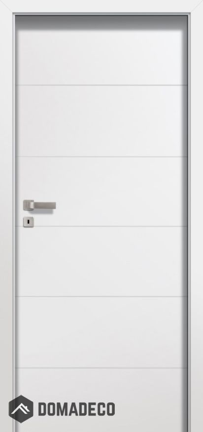 Le vantail de la porte est orné d'un fraisage horizontal.