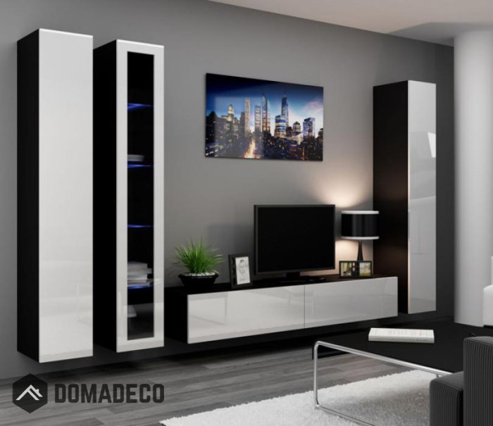 3x Un meuble vitrine avec une porte en bois et une en verre. Inclus : une tablette en verre, une tablette en bois et l'éclairage LED - 180/40/30 cm