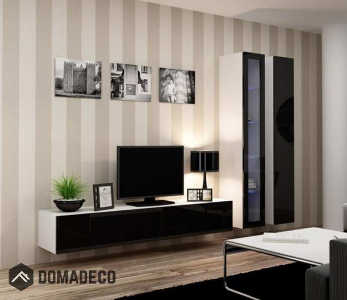 2x Un meuble vitrine avec une porte en bois et une en verre. Inclus : une tablette en verre, une tablette en bois et l'éclairage LED - 180/40/30 cm