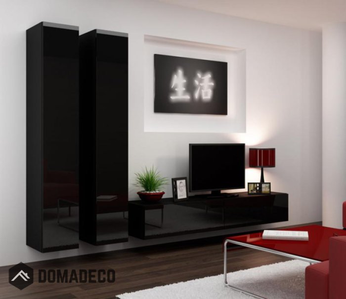 2x Un meuble vitrine avec une porte en bois et une en verre. Inclus : une tablette en verre, une tablette en bois - 180/40/30 cm