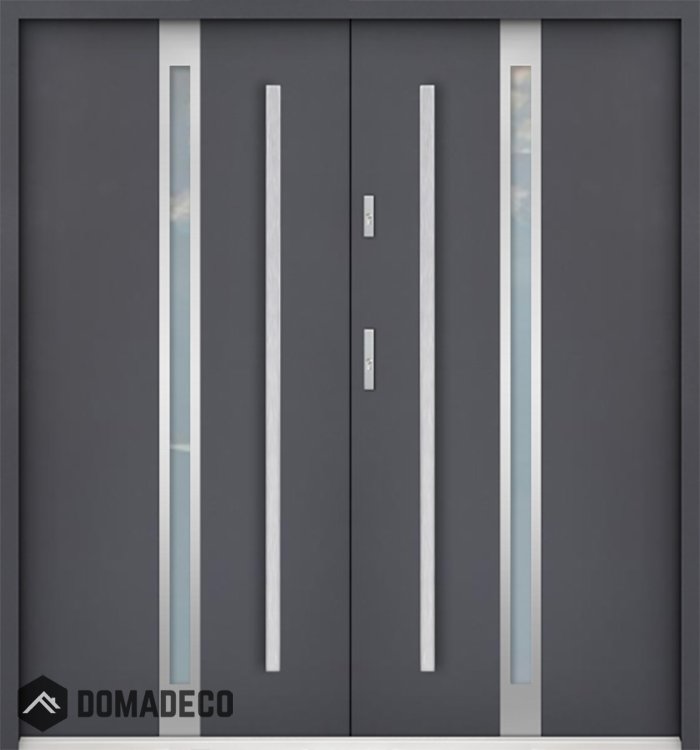 La porte est en acier inoxydable. À l'intérieur, il est rempli de mousse polyuréthane PUR et de bois. L'épaisseur du vantail de porte est de 55 mm. Double système d'étanchéité - un joint est dans le seuil du cadre et l'autre est situé dans la partie de support du vantail de porte. Ils réduisent les vibrations et protègent votre maison contre la perte de chaleur. Ils ne changent pas de volume sous l'influence des conditions atmosphériques. Le cadre de la porte est doté de renforts anti-effraction dans les pièces de charnière et les points de verrouillage.