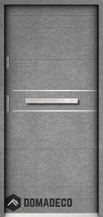 La porte est en acier inoxydable. À l'intérieur, il est rempli de mousse polyuréthane PUR et de bois. L'épaisseur du vantail de porte est de 55 mm. Double système d'étanchéité - un joint est dans le seuil du cadre et l'autre est situé dans la partie de support du vantail de porte. Ils réduisent les vibrations et protègent votre maison contre la perte de chaleur. Ils ne changent pas de volume sous l'influence des conditions atmosphériques. Le cadre de la porte est doté de renforts anti-effraction dans les pièces de charnière et les points de verrouillage.