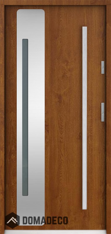 La porte est en acier inoxydable. À l'intérieur, il est rempli de mousse polyuréthane PUR et de bois. L'épaisseur du vantail de porte est de 55 mm. Double système d'étanchéité - un joint est dans le seuil du cadre et l'autre est situé dans la partie de support du vantail de porte. Ils réduisent les vibrations et protègent votre maison contre la perte de chaleur. Ils ne changent pas de volume sous l'influence des conditions atmosphériques. Le cadre de la porte est doté de renforts anti-effraction dans les pièces de charnière et les points de verrouillage.